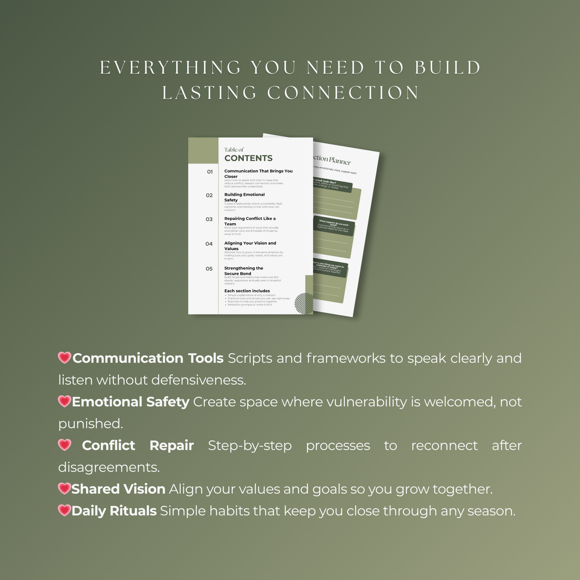 "The communication scripts were a game-changer for us. We finally had words for difficult conversations instead of just avoiding them or fighting. The emotional safety toolkit helped us both feel heard without getting defensive."