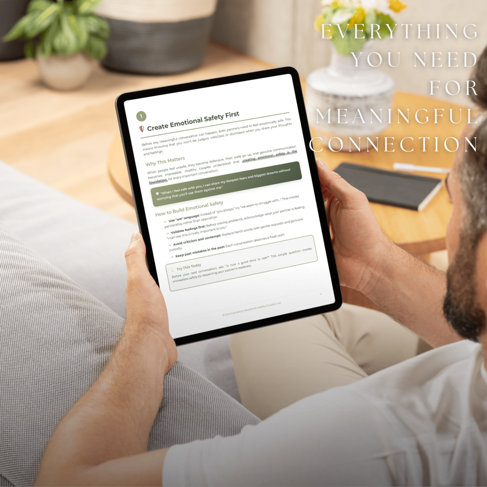 Before any meaningful conversation can happen, both partners need to feel safe to be vulnerable without fear of judgment or criticism.