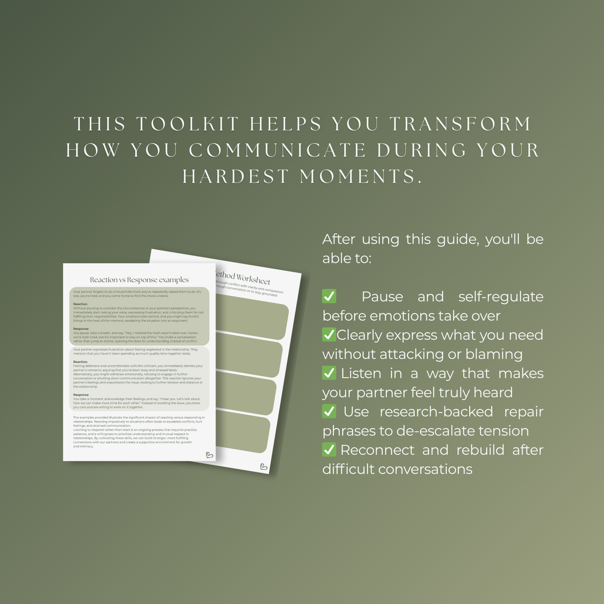 Get instant access to the complete 29-page conflict resolution system that's helped over 1,247 couples create healthier communication.